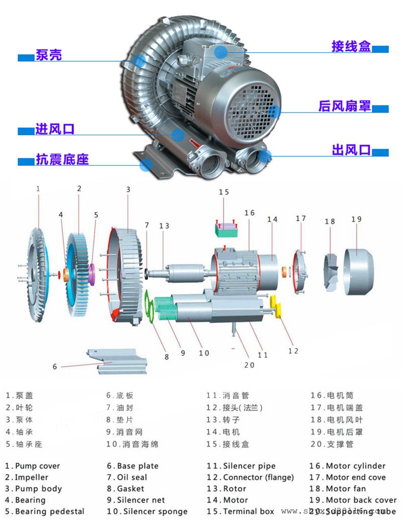 曝气高压风机(风面本用铝合金和铣合金制造有别于一般铝壳或铁壳之风机,更坚固耐用)适用范围(规格多,分高压力和大风量系列,可灵活选用);无油、无污染,平静如水.率、低能耗(在高压力范围有较保守的设计,在使用情形下产生变化时,仍能安全运转); 安装容易(能任意安装于水平或垂直方向);可靠性高(水产养殖鼓风机除叶轮外,无其它......